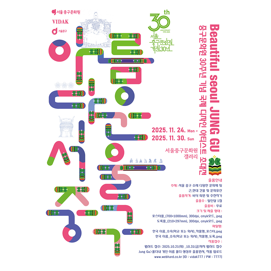 2025 VIDAK [Beautiful Seoul JUNG GU]: 중구문화원 30주년 기념 국제 디자인 아티스트 초대전 개최 공고입니다.